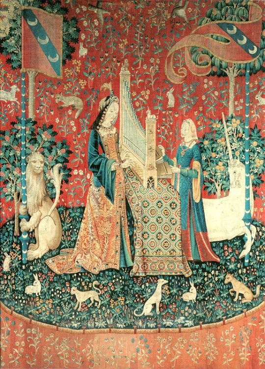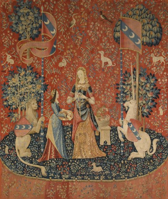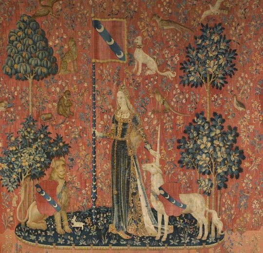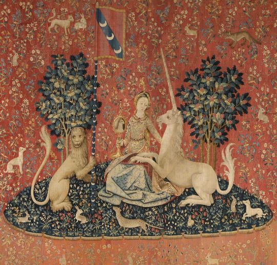 Гобелены из этой серии отражают пять человеческих чувств: Осязание, Обоняние, Зрение, Вкус, Слух. Шестой, самый загадочный, имеет название "Мое единственное желание (À mon seul désir)".